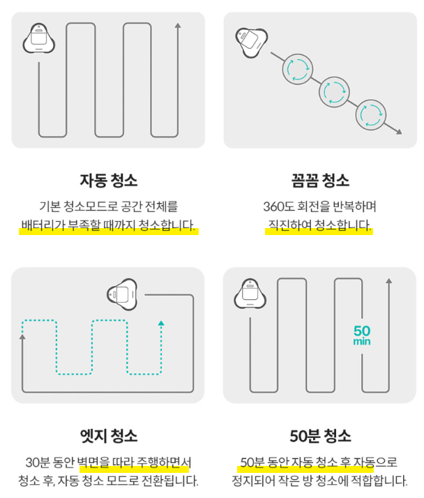 아니.. 회전하면서 도는 것도 청소 방법 중에 하나라고 합니다. 물론 회전하면서 닦는 것까지는 이해가 갑니다. 이것도 청소 맵핑이 없기 때문에 단순하게 회전하며 직진합니다라고 표현을 하게 되는 것입니다.